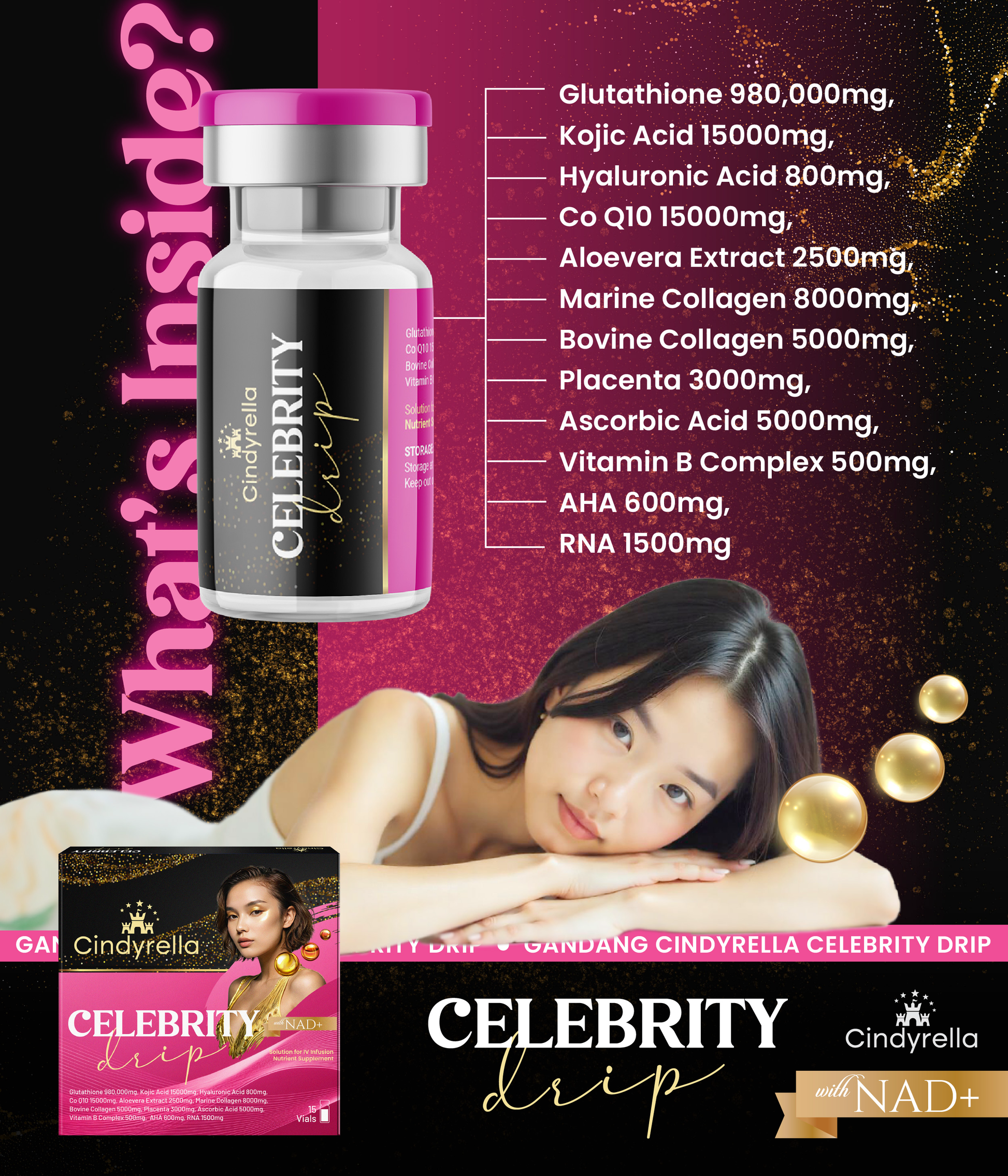 Step into the spotlight with Cindyrella Celebrity Drip with NAD+, the premium wellness and beauty infusion designed to rejuvenate from the inside out. Each box contains 15 vials carefully formulated with high-potency ingredients that support glowing skin, youthful vitality, and total body wellness. More than just a beauty drip, Celebrity Drip is your all-in-one solution for radiance, energy, and cellular health.